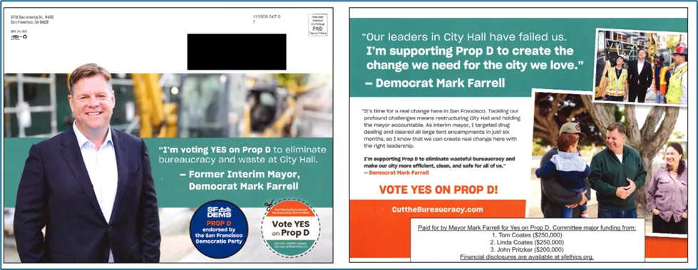 Exhibit 1: Images from Mayor Mark Farrell for Yes on Prop D Mailer
