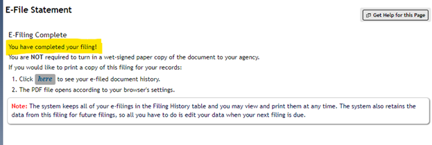 E-Filing is completed. Please feel free to print a copy of the certificate for your records.