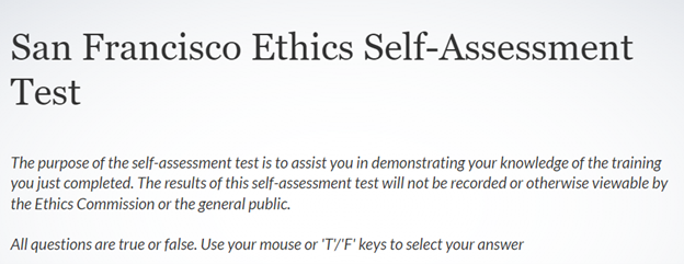 Designated employees of the City and County of San Francisco who are required to file an annual Statement of Economic Interests (Form 700) with their departments must complete the Annual Ethics Training (C&GCC Section 3.205).