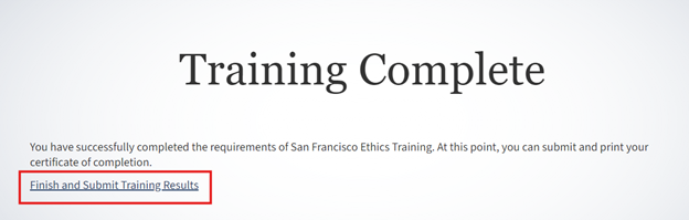 The training portion of this module is completed, however the certificate of completion still needs to be signed and submitted. Click on the Finish and Submit Training Results link.